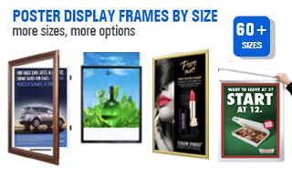 Our biggest-seller, poster snap frames "SwingSnap" Poster Frames, come in over 100 standard sizes from small to extra-large snap frame sizes. Snap Frame Sign Holders, also referred to as clip frames or flip-up frames, come in numerous styles, including mitered or radius corner, security screw, locking snap frames. We also offer backlit and edge-lit LED snap frame lightboxes.