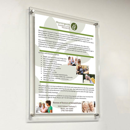 There's no other framing system like it. Our patented 10x12 poster frames, "SwingFrame" features hidden hinges and gravity lock. The beauty of the SwingFrame is that once it's wall mounted, you can't tell that it swings open. Just swing open. Place your 10x12 poster or other insert. Swing Close. Unlike permanent 10x12 picture frames, you don't have to dismantle the SwingFrame to update your marketing materials. thus making changing posters, other printed graphics and signage easy.