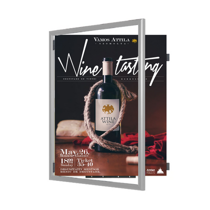 The Wide Face Poster SwingFrame has proven to be our most popular wall-mounted poster frame profile, with its simple, 1” slightly curved contemporary style metal frame designed for quick change functionality as well as its appealing presentation.