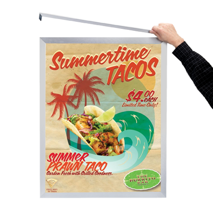Snap Poster Frames 12x16 are easy change, quick snap-open aluminum poster picture frames and Sign Frames. Quickly front load or change and update 12x16 Posters, Signs, Advertising, Photography and Graphics either indoor or outdoor.