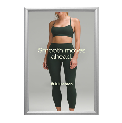 The Wide Face Poster SwingFrame has proven to be our most popular wall-mounted poster frame profile, with its simple, 1” slightly curved contemporary style metal frame designed for quick change functionality as well as its appealing presentation.