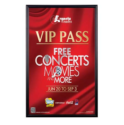 Aluminum Snap Frames 16x24 are the most popular changeable poster displays. Simplicity and low cost are the primary reason as well as offering the most popular 16 x 24 poster frame finishes, black, silver and gold that fit comfortably within numerous interior retail store decors. One 16 x 24 poster display or several 16x24 sign frames or thousands of 16x24 frames, “poster snaps” remains the favored choice for small and large businesses, retail stores, corporations, institutions and as a POP display signage fixture. Wall mount and snap open your 16x24 snap frame, update your 16 x 24 poster, and snap shut. That's it!