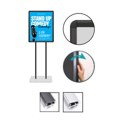 A Popular Choice for Retail Stores, Corporations and Institutions, this Colorful Classic Poster SwingFrame poster display is unique, designed with more frame color choices - in fact 75+ more metal frame colors, and the rounded metal frame style includes a matboard, a design element to further enhance the poster display, allowing you to create a colorful design that fits smartly into your interior decor.