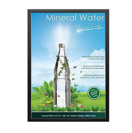 Mini poster snap frames with .60" wide mitered corners allow you to effortlessly place and change your posters, signs, and advertisments; all four sides of the .60" wide metal snap frames are spring-loaded to snap-open and snap shut.