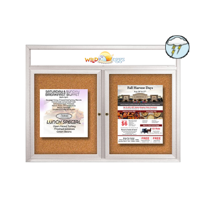 2 Door Bulletin Board Indoor Radius Display w Message Header