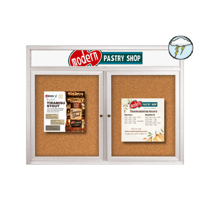 2 Door Bulletin Board Indoor Radius Display w Message Header