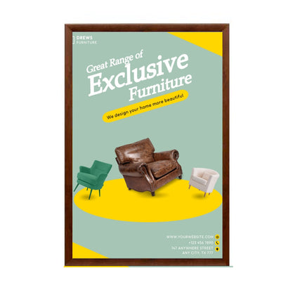 Whatever the application, these oversized, mitered, high quality, front-loading "SwingSnap" wood poster display frames make a popular poster display and sign holder, widely used for trade shows, exhibits, banks, and as store signage fixtures.