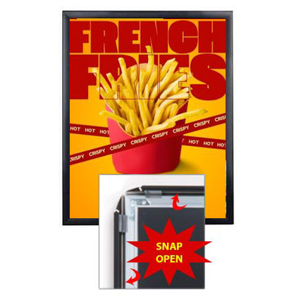 Mini poster snap frames with .60" wide mitered corners allow you to effortlessly place and change your posters, signs, and advertisments; all four sides of the .60" wide metal snap frames are spring-loaded to snap-open and snap shut.