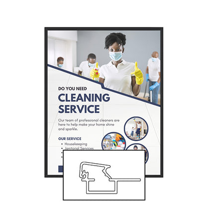SwingSnaps presents a 2 1/2" wide-edge snap poster frame metal profile for more visual impact, and with a narrow frame depth of 3/4", this wall mount snap frame is ideal for displaying large format posters or to create a bold display frame look for small posters and signs.