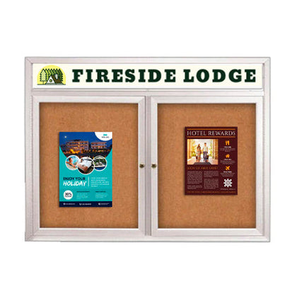 • 40x50 Bulletin Board 2 Door Lighted + Header - For Indoors Only