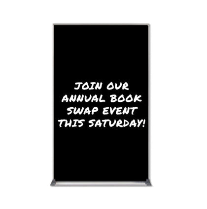 Black Write On/Wipe Off Message Boards are an ideal communications tool to quickly and easily alter you message, lessons or other announcements. Choose from 40+ Framed and ready to mount standard Value Line display board sizes. If a custom black board size or if a wooden frame or metal frame profile is required, we can build it for you. Call Customer Service for more information or a Quote