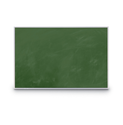 - Silver aluminum trim (1/2" WIDE) borders the green chalk board