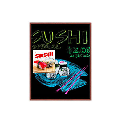 The standard wall SwingFrame Display Frame Markerboards come in several frame styles, 18 standard sizes, six metal, and ten wood finishes. Custom frame sizes with 100's of metal and wood frame profile styles and colors offer a wide range of design possibilities to complement indoor decors.