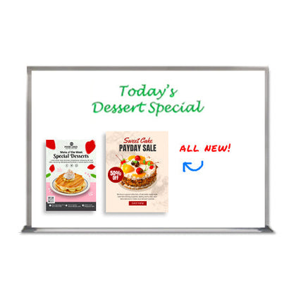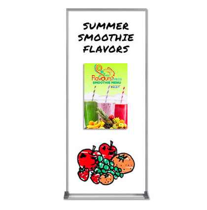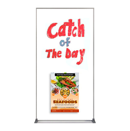 Two sides are better than one. You can use both dry erase marker boards to feature the same message or display two different signage graphics simultaneously. Utilizing a Floor standing indoor or outdoor Dry Erase Markerboard is an effective way to create eye-catching messages for signs, restaurant menus, schedules, promotions, and other announcements.