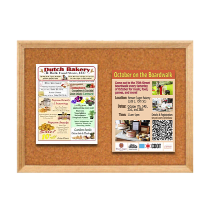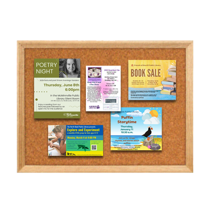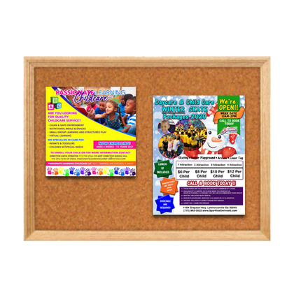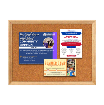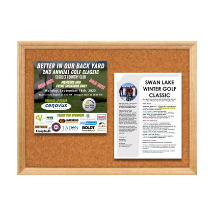 Thinking about a Custom Cork Board? Our Custom Design Department can design and create any style bulletin board with your choice of 200+ wood and metal frame profiles and a variety of custom bulletin board sizes. With our 20 years of experience in custom display solutions, we can create the right framed cork bulletin board for your indoor or outdoor location. Contact us to learn more.