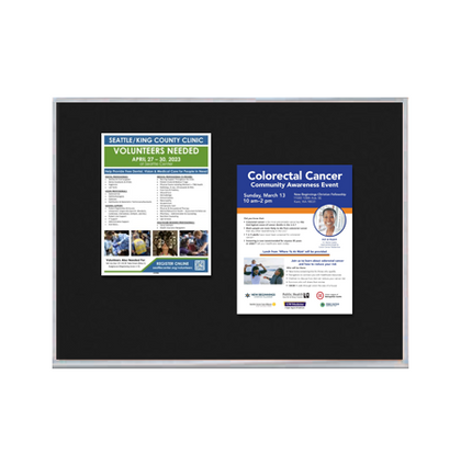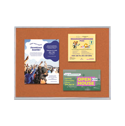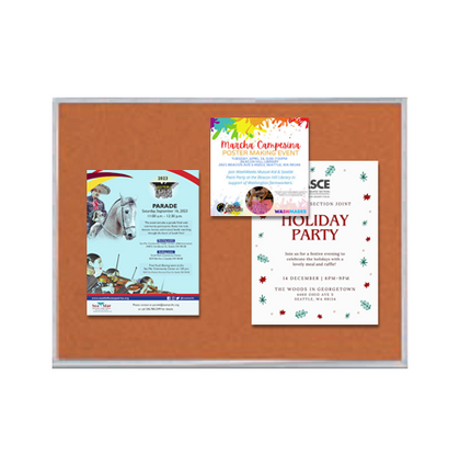 Need a Fabric Tackboard for your Office Bulletin Board? We offer Aluminum Framed Cork Boards in over 46 Different Indoor Bulletin Board Sizes, like: 8.5 x 11, 11 x 17, 14 x 14, 18 x 36, 24 x 60, & 48 x 96. In addition, our indoor wall mounted fabric message boards feature a 5/8 Inch Notice Board Depth, 1/2 Inch Silver Aluminum Trim and natural tan cork board surface affixed to sturdy fiberboard.