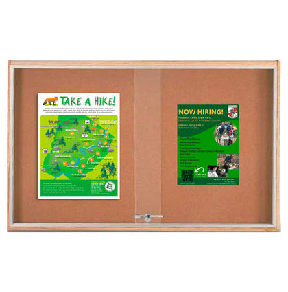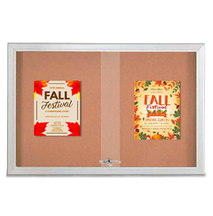 More than 60x36 Glass Bulletin Boards. We have it all; Large Outdoor Metal Framed Bulletin Board with Header, an Indoor Designer Wood Framed Cork Board with Lights, 1,2,3 and 4 door bulletin boards -- all types of custom cork boards, wall mount, free standing, enclosed, framed or frameless; call us for more details.