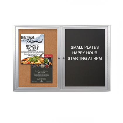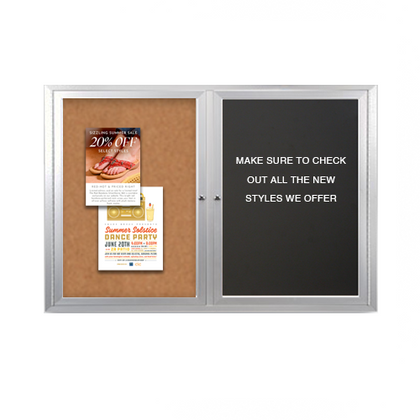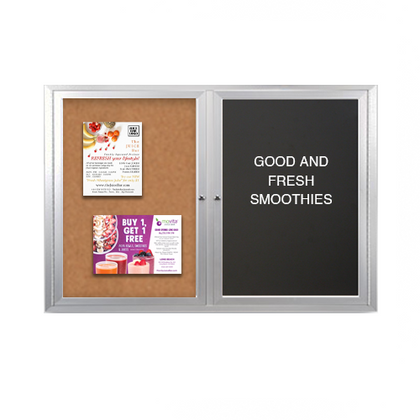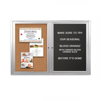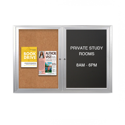 Enclosed 2-Door INDOOR Combo Board 40x50 | Cork Bulletin Board & FELT Letter Board