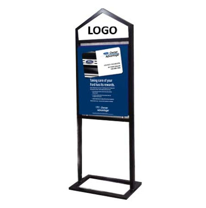 - 14x22 Heavy Duty Economy Sign Holder. An aluminum standing sign holder is a great way to advertise your latest promotions at a budget-friendly price. This double-sided sign stand allows you to display up to two 14x22 portrait posters, which increases your chances of attracting new customers. While this floor stand is slim, it is constructed with a solid steel base to ensure your sign stays securely in place as people pass by. Change your advertisements with ease using the slide-in, top-loading frame.