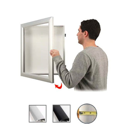 • Patented swing-open display frame system (opens right to left)