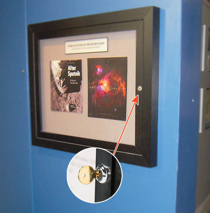 When wall mounted, the slim 8.5x11 metal frame display cabinet can withstand everyday use while protecting and delivering your elevator messages. A solid continuous hinge is installed in the back of the front frame to minimize the display case depth when in the elevator cabin.