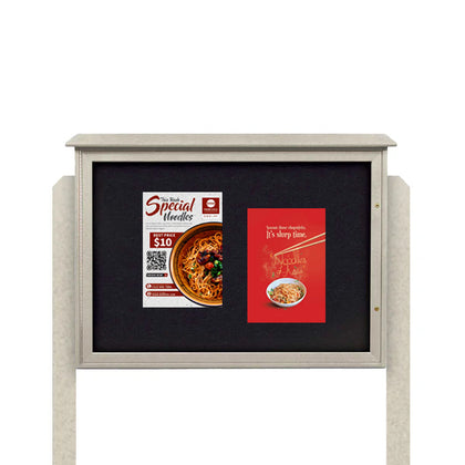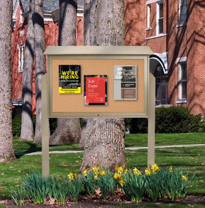 If you plan to install your outdoor cork board in front of your business, school, church, or other organization, we also offer free-standing options with posts. These include 8-foot or 10-foot posts that attach to the sides of the cases using pre-drilled holes for easy mounting. Bolts are included.