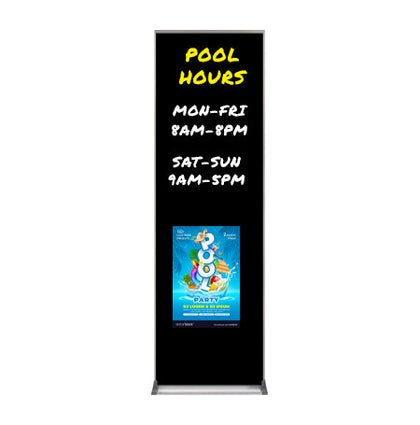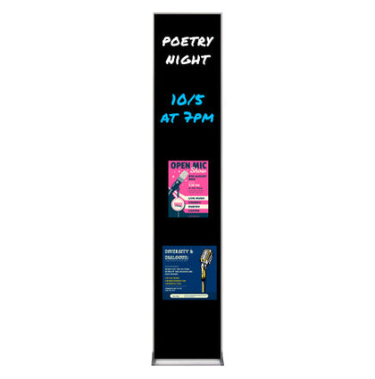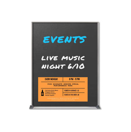The advantages of choosing Magnetic Black Marker Board is the usability and durability it offers. These open face Marker Message Display Boards have a porcelain steel writing surface that’s considered to have the best quality over other types of dry erase black message boards. It’s made to work with wet erase florescent markers. Simply write on. When you’re ready to alter your message and or drawing, wipe off. There’s no ghosting residue.