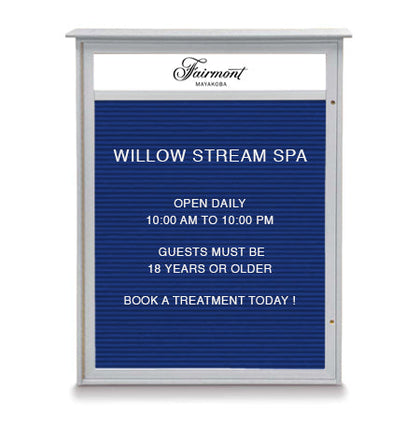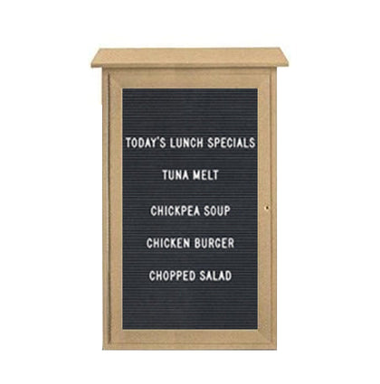 Regardless of your outdoor location, this outdoor enclosed letter board will not only excel at displaying your Messages, Announcements, Events, Schedules, Show Times, but it can stylistically fit into your outdoor location with 6 Faux Wood Style Finishes: Sand, Light Grey, Weathered Wood, Woodland Green, Cedar & White. With this , you can also order a Optional Vinyl Letter Board to enhance the style of your outdoor notice board. There are 5 Popular Colors available: Burgundy, Black, Barcelona Blue, Hunter Green & Grey.