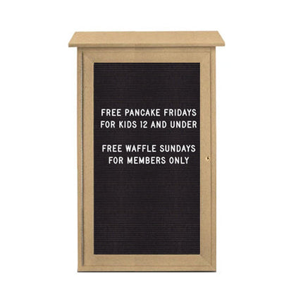 Choose from 6 Faux Wood Style Finishes: Sand, Light Grey, Weathered Wood, Woodland Green, Cedar & White. The beauty of Faux Wood Recycled Plastic Lumber is that it has the style and look of real wood. So you can select the outdoor enclosed letter board 12x18 info display with a finish that's right for your outdoor location.