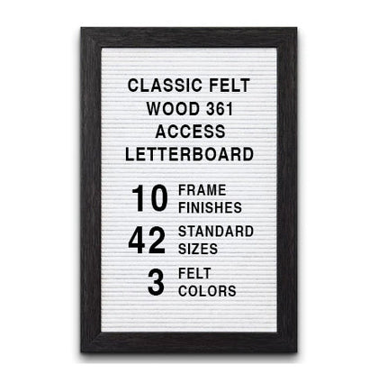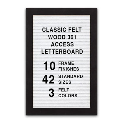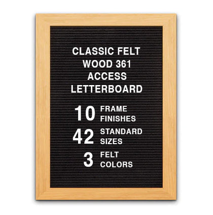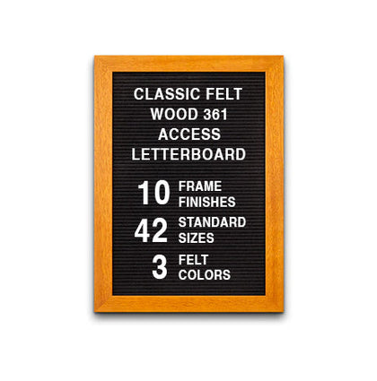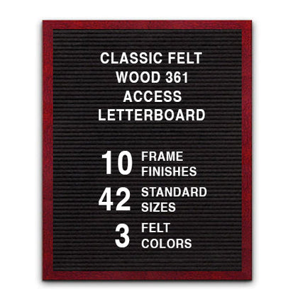 Access Letterboard 24 x 36 Open Face Changeable 361 Wood Framed FELT Letter Board, 10 Wood Finishes