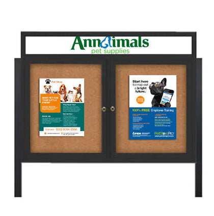 Need a stylish, safe, and effective way to display messages in an outdoor location? Our 96x36 Outdoor Enclosed Bulletin Board with 2 Lockable Doors and 2 Leg Posts features a sleek radius edge profile design, weatherproof bulletin board display case, and a personalized message header.