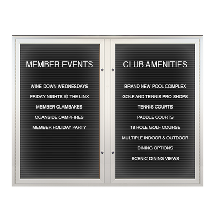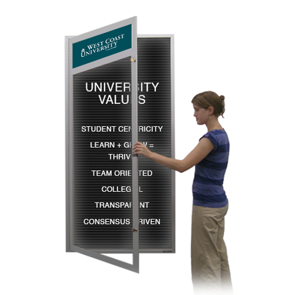Our popular enclosed letterboards are offered in numerous one door, two door and three door display cases sizes. In fact, no other online or retail store offers as many letter board display case sizes as presented on this website.