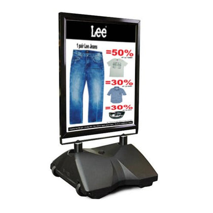 Browse our large selection of quality pavement sign stands, from simple plastic A-frame boards, rolling sign stands, and outdoor poster display stands. Choose from slide-in reader boards to easily glide your sign into the frame. Or select a snap frame and simply snap open the sides of the frame to lock in your poster.