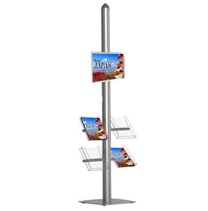 The height of the Sign stand frame and optional literature holders can be easily adjusted to suit your needs thanks to our POSTO-STAND's™ 72" aluminum post with slotted grooves. These floor display stands are composed of durable aluminum and they feature a weighted steel base for stability. The weighted base can be ordered in either a round or square base style; it's your choice!