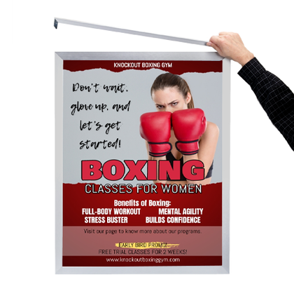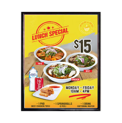 So Depending Your Signage Needs and Your Budget, We Offer a Variety of Quick Change Frames with a Slide-In Sign Frame Design. You Have lots of Standard Slide-In Sign Frame Sizes to Choose From. Other Style Options Include Top Load Frames, Side Load Frames, Backing Board, Clear Acrylic Window, Break Resistant Window and Non-Glare Acrylic Lens.