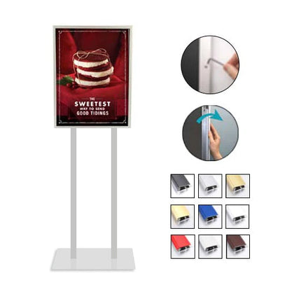 Double Pole Poster Floor Stand 8.5x14 Sign Holder - Fast Change Snap Frame with Security Screws and Key Tool