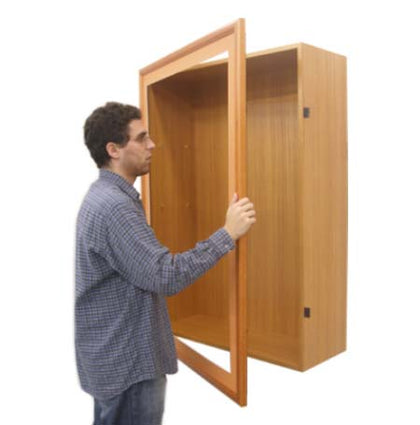 Wall Mount, large SwingFrame Designer Display Cases is our Made in the USA, patented swing open shadow boxes for showcasing objects, collectibles, artifacts, art, posters, and other postings. The large displays are ideal for displaying company products for businesses and historical items for schools, universities, and wide-ranging organizations.