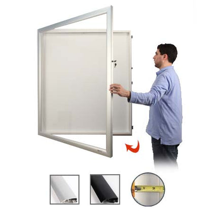 In addition to the custom options, SwingFrame offers many features that can enhance the display of your items and make them more interesting to your intended audience. For example, LED lighting can be added to highlight specific items, while adjustable glass shelves can create a more elegant look for multiple smaller collectibles, memorabilia, articles, and objects. Fabric-covered cork boards and magnetic whiteboards are other interior backing materials we offer. These options provide flexibility and allow you to create a unique display that meets your presentation needs.