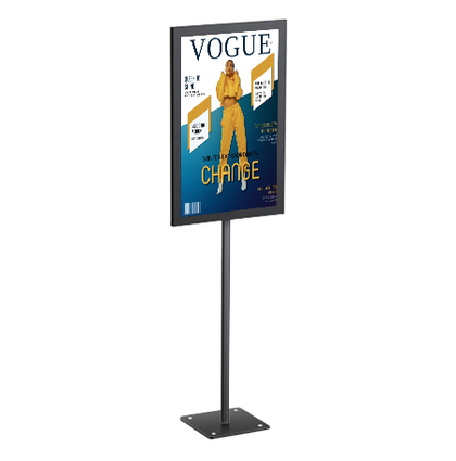 This lightweight Countertop Pedestal Display Stand has an 18" fixed steel post, is double-sided, and holds 11 x 14 signs, graphics, posters, and other signage. The one-sided metal sign holder frame accepts up to 1/16 thick graphics. Choose the frame in portrait or landscape frame orientation.