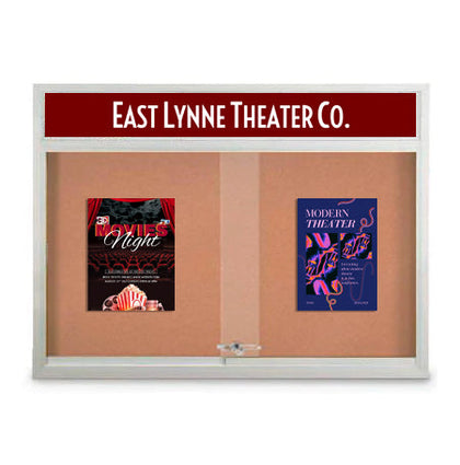 Promote the name of your school, university, classroom, sports team, office, business, event or whatever you like with the 84x48 sliding glass bulletin board's personalized header panel. We'll print your message free in All Caps Helvetica Black Lettering, a great way to catch people's eye. Add Custom Fonts, Logos in B/W or Color for an upcharge or leave the panel blank.