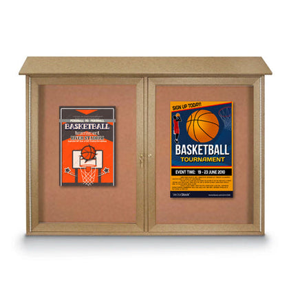 Our Outdoor Enclosed Bulletin Board is designed to take on the typical everyday weather and outside elements. The durable cork bulletin board display case is made of Faux Wood, which is eco-friendly and maintenance-free. The two-door message center provides ample space for displaying your Maps, Messages, Menus, Posters, Signage, and other essential announcements.